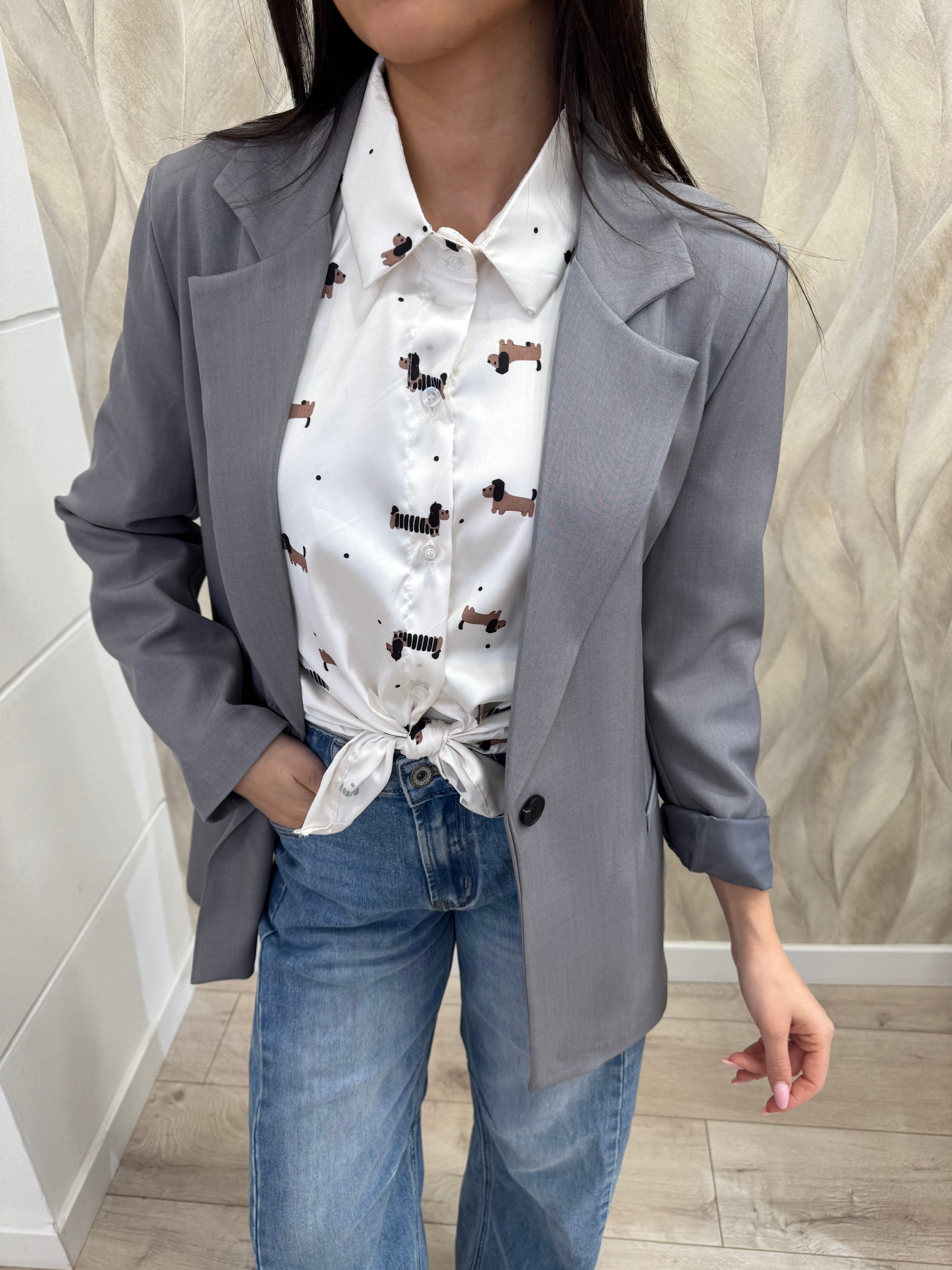 Giacca dalla linea dritta con tessuto fiammato che dona profondità e carattere alla superficie, unendo struttura ed eleganza in un design essenziale. Il taglio pulito valorizza la silhouette mantenendo comfort e versatilità, rendendola perfetta per completare sia look formali che abbinamenti più casual con un tocco ricercato.